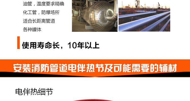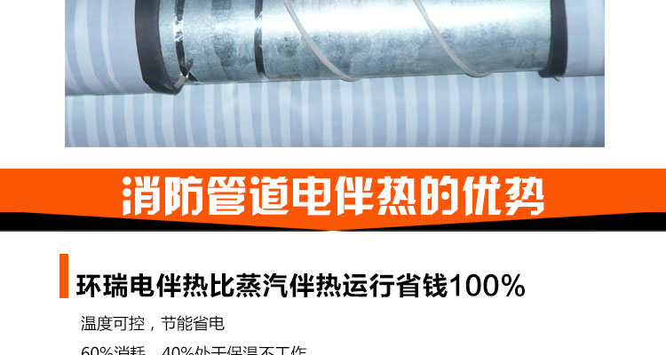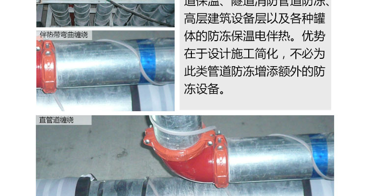 消防管道與人們的生活息息相關(guān),電伴作為一種有效的消防管道防凍解決方案,在消防管線(xiàn)及地下車(chē)庫(kù)噴淋系統(tǒng)中,一直被廣泛應(yīng)用,其工作原理是通過(guò)電熱帶散發(fā)的熱量,間接或直接的熱交換補(bǔ)償被伴熱管道的熱損失,以達(dá)到防凍保溫的要求,保證消防管道在嚴(yán)寒的冬季正常使用。我公司消防管道專(zhuān)用防凍電伴熱,具有使用壽命長(zhǎng)、啟動(dòng)電流小、記憶性能好、年衰減率低等優(yōu)點(diǎn)。