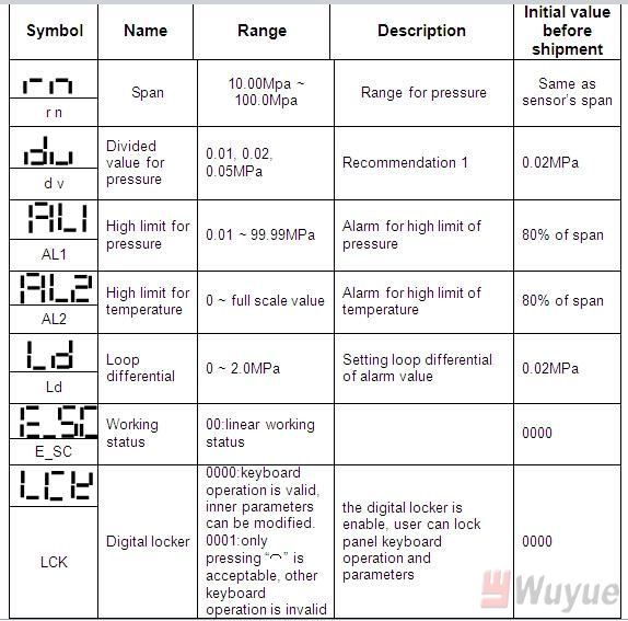 In working state, press the “⌒” key for five seconds, and then the inner parameters can be modified.