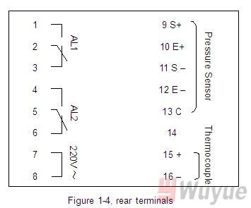 (1) Display Unit : double row structure with four LED digital bit, higher row for pressure and lower row for temp. .