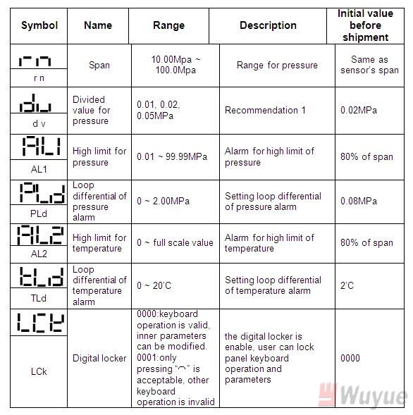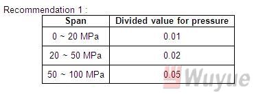 i. high limit for pressure : 0 ~ 99.99MPa
